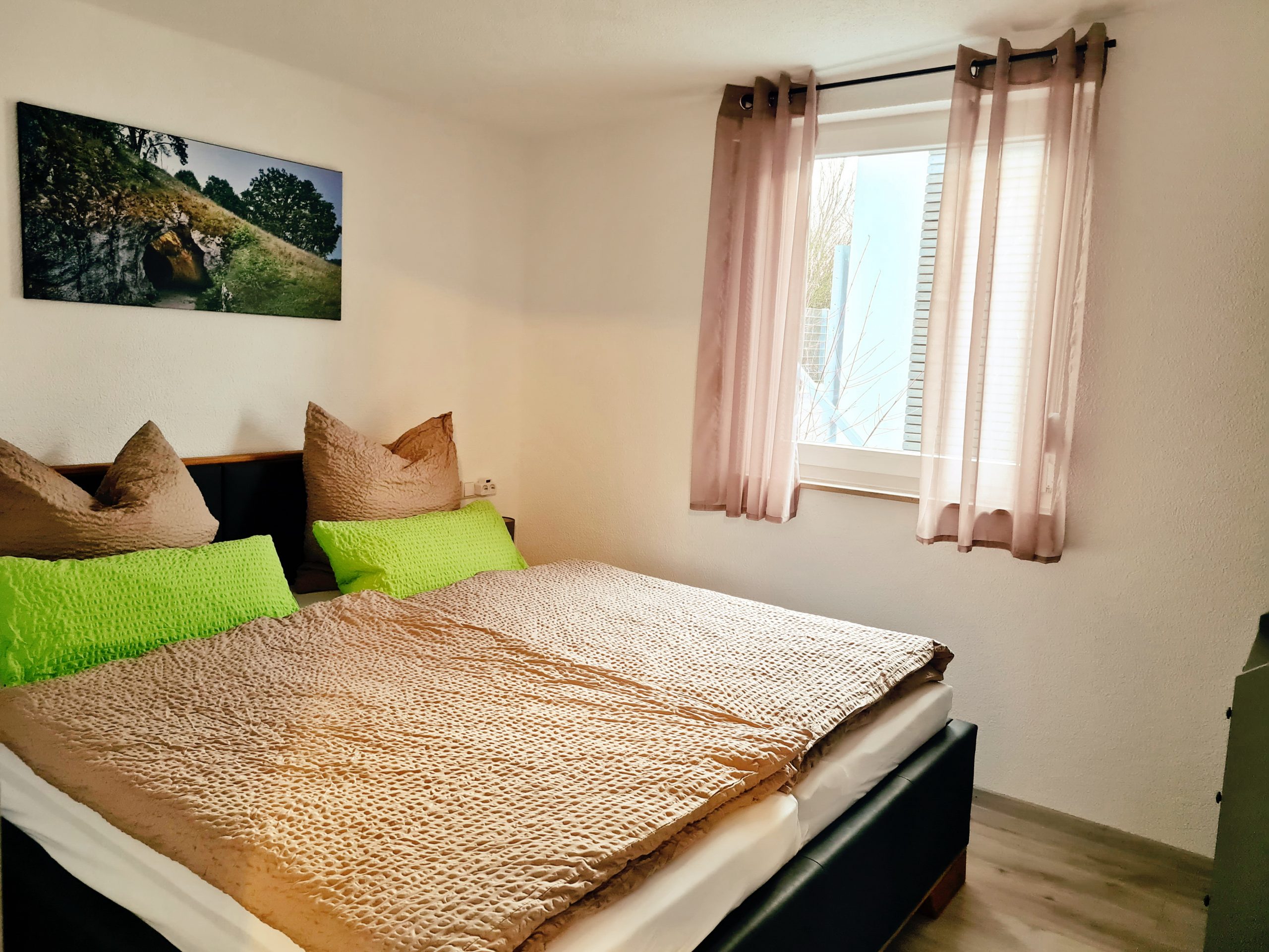 • 1. Schlafzimmer mit großem Doppelbett (1,80m x 2,00m)